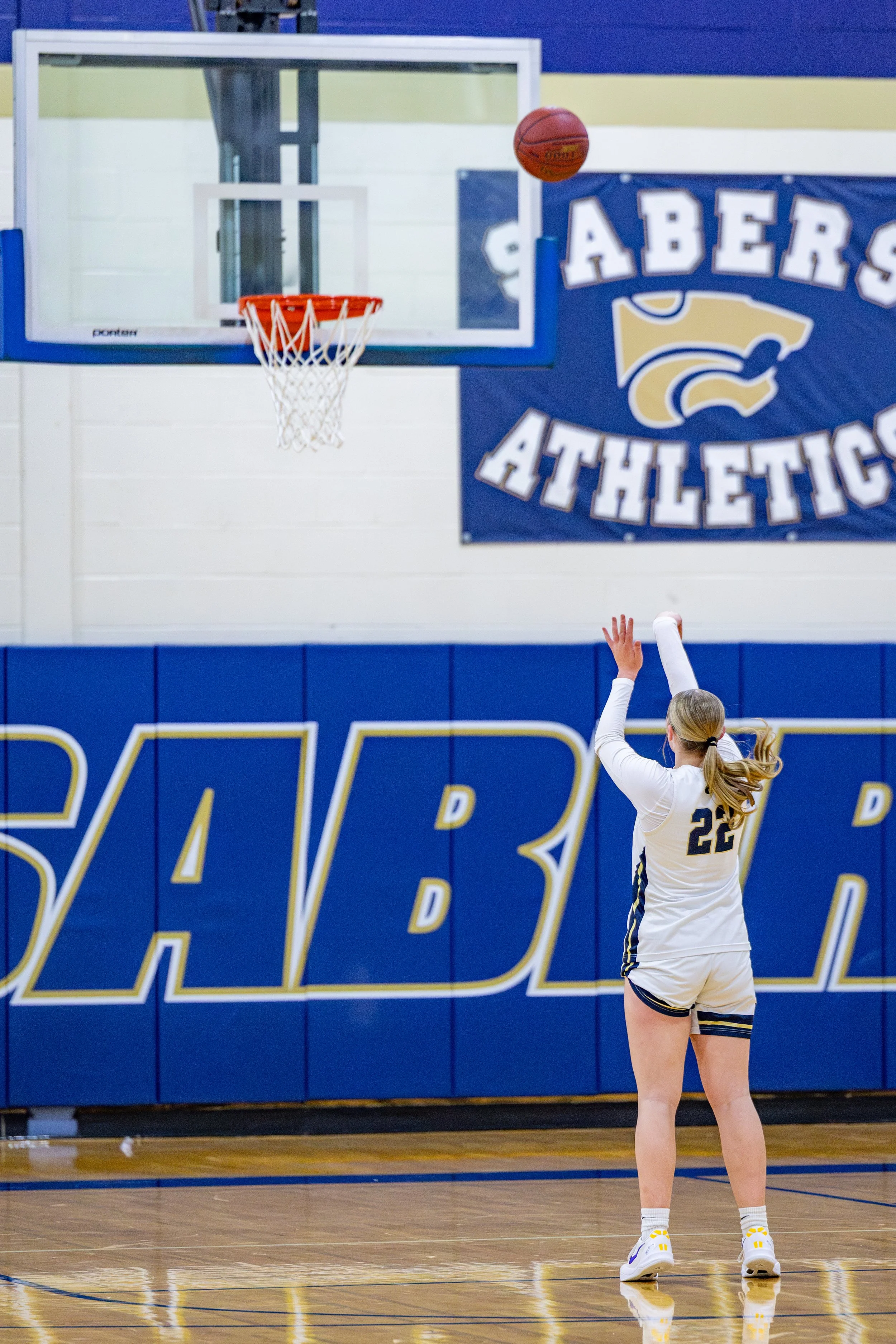 A free throw comes down to a player, a ball, and a net. The crop on this shot eliminates all of the distractions; it is just her and the shot. It feels lonely but also focused just on the action.